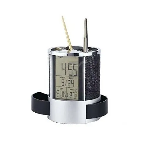- Digital Calendar Pen holder with Timer, Alarm clock, Thermometer, Digital Pen Stand, Digital Clock, All In One Pen Stand, Office Organizer, Desk Organizer (Premium Quality).
