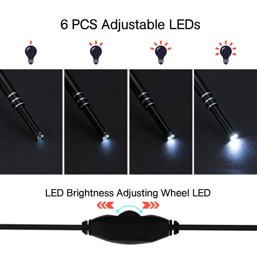 - 6 Adjustable LED Lights for Android Phone (OTG+Micro USB+Type C) Window Mac PC with Ear Pick Cleaning Kit